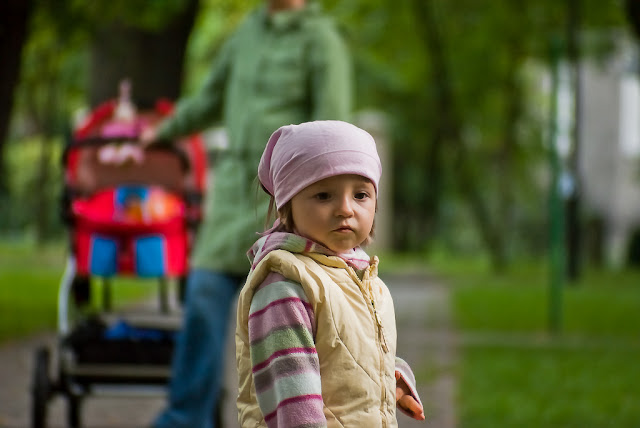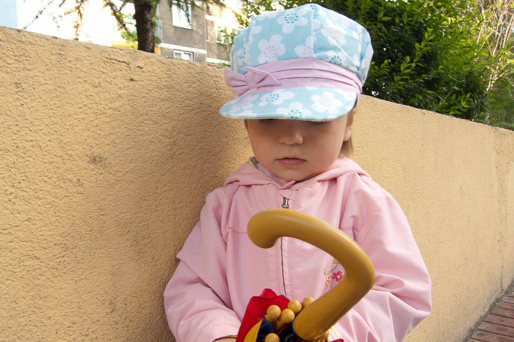 Młoda nie przepada za wychodzeniem na dwór kiedy pada. Ale obietnica lizaka zazwyczaj załatwia sprawę.